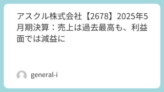 2025年7月4日、アスクル株式会社は2025年5月期(2024年5月21日〜2025年5月20日)の決算を発表しました。本記事ではその内容をわかりやすくまとめ、今後の展望についても解説します。売上高は増加も、利益は減少傾向に2025年5月...